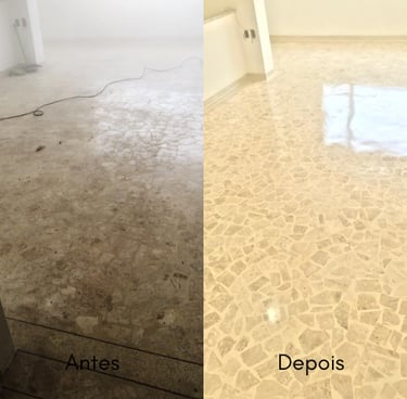 Este é um trabalho de restauração, alcançando o melhor resultado possível dentro das condições do piso, nunca ficando como novo, mas chegando