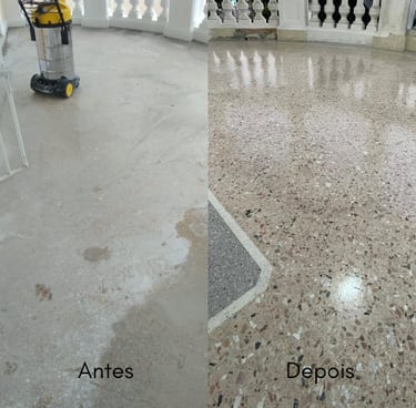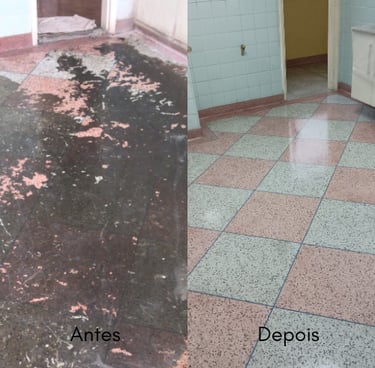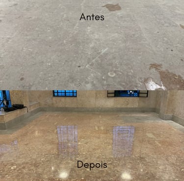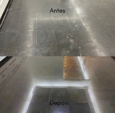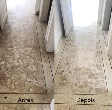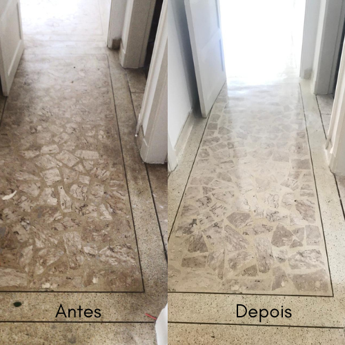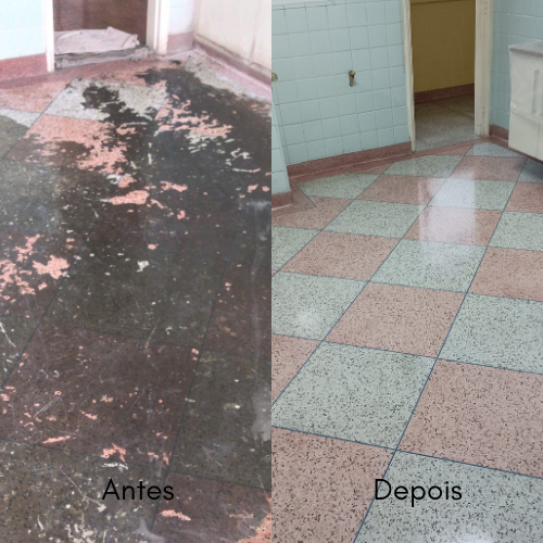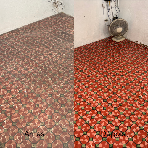Este é um trabalho de restauração, alcançando o melhor resultado possível dentro das condições do piso, nunca ficando como novo, mas perto do seu máximo potencial.