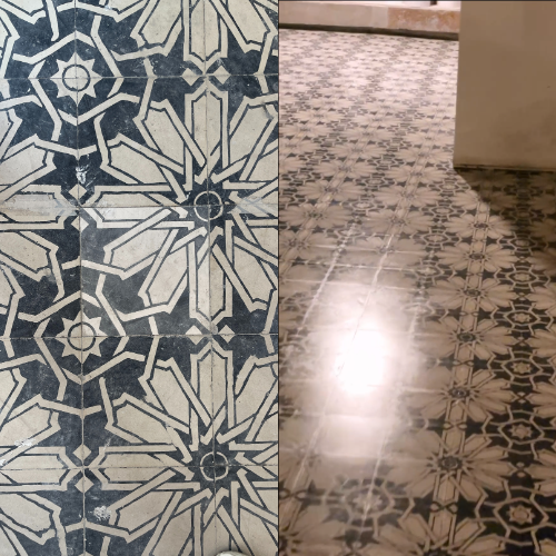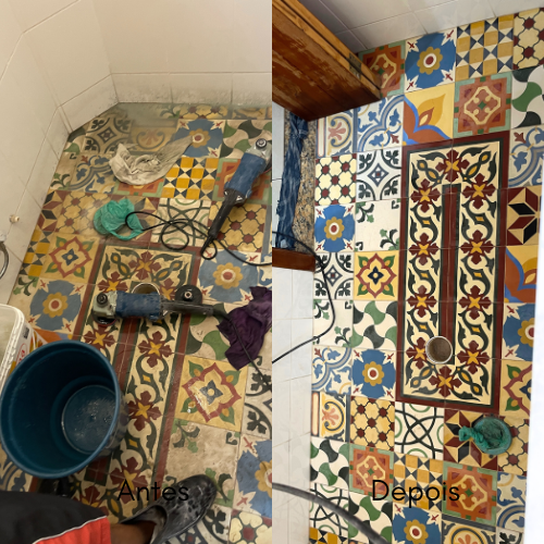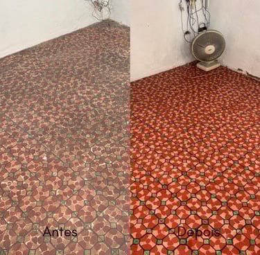 O processo de polimento para ladrilho hidráulico segue etapas precisas para restaurar a superfície do piso. Começamos com o lixamento utilizando lixas de grão 50 e, em seguida, passamos para o grão 200 para remover as imperfeições e nivelar a superfície. Após o lixamento, aplicamos 3 camadas de selante para garantir a impermeabilização!